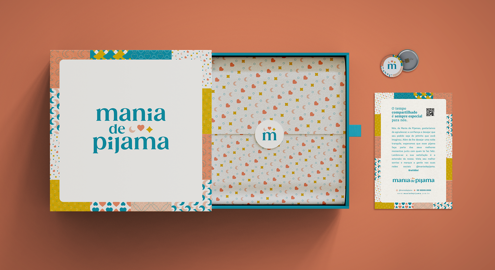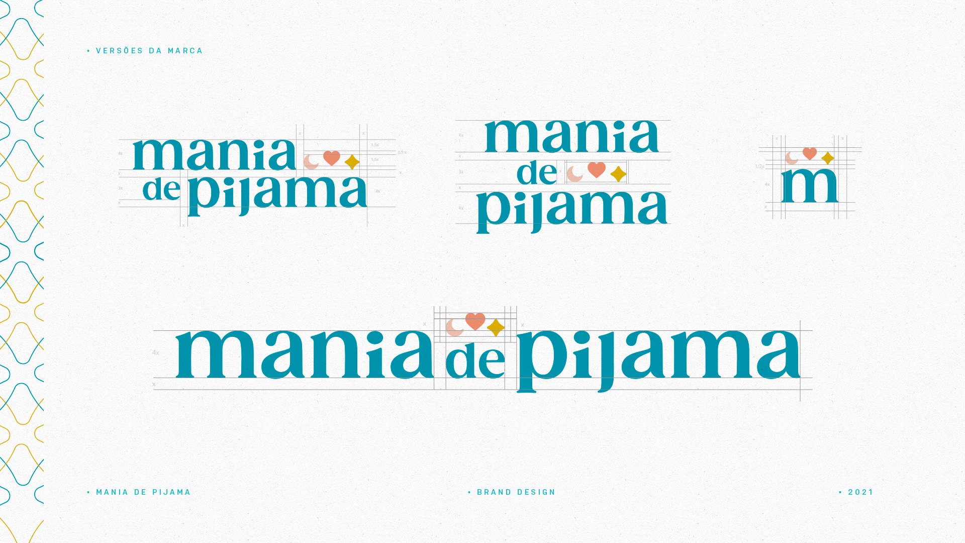 Projeto de identidade de marca para Mania de Pijama, marca que vende pijamas e moda home wear.